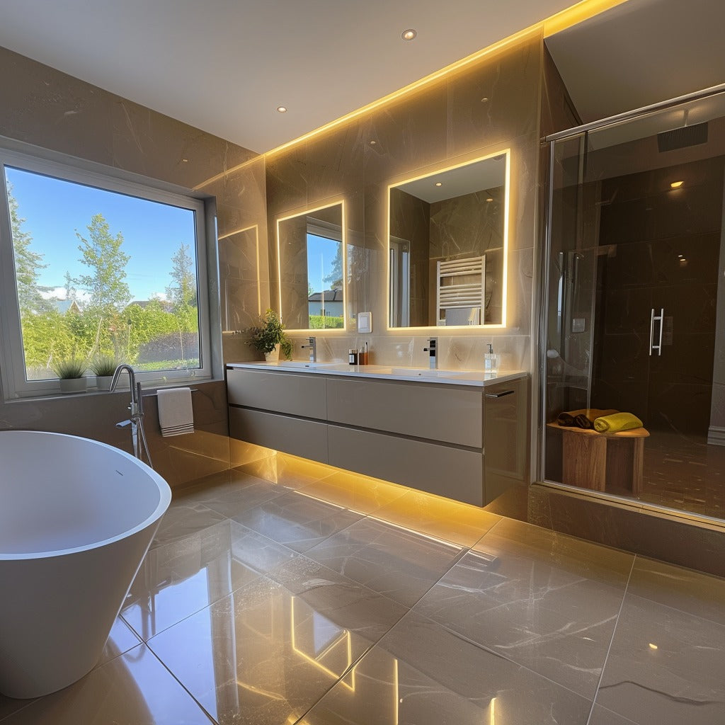 Enhance your bathroom with innovative touches like smart defog LED mirrors, adding function and style.
