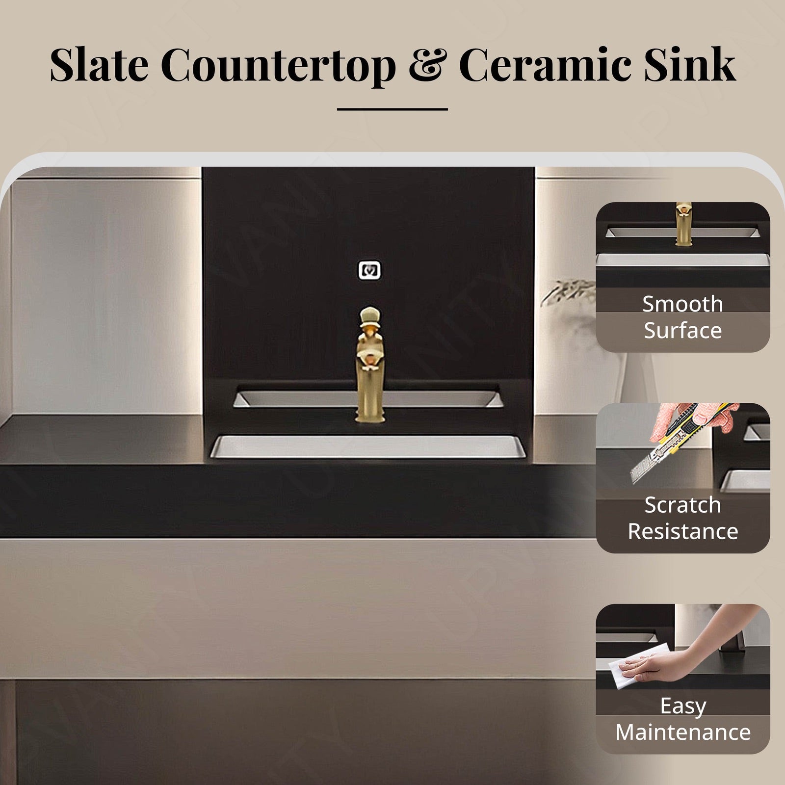 Crafted from sustainably sourced solid wood, this vanity is water-resistant and designed to endure high-temperature environments while maintaining its timeless charm.