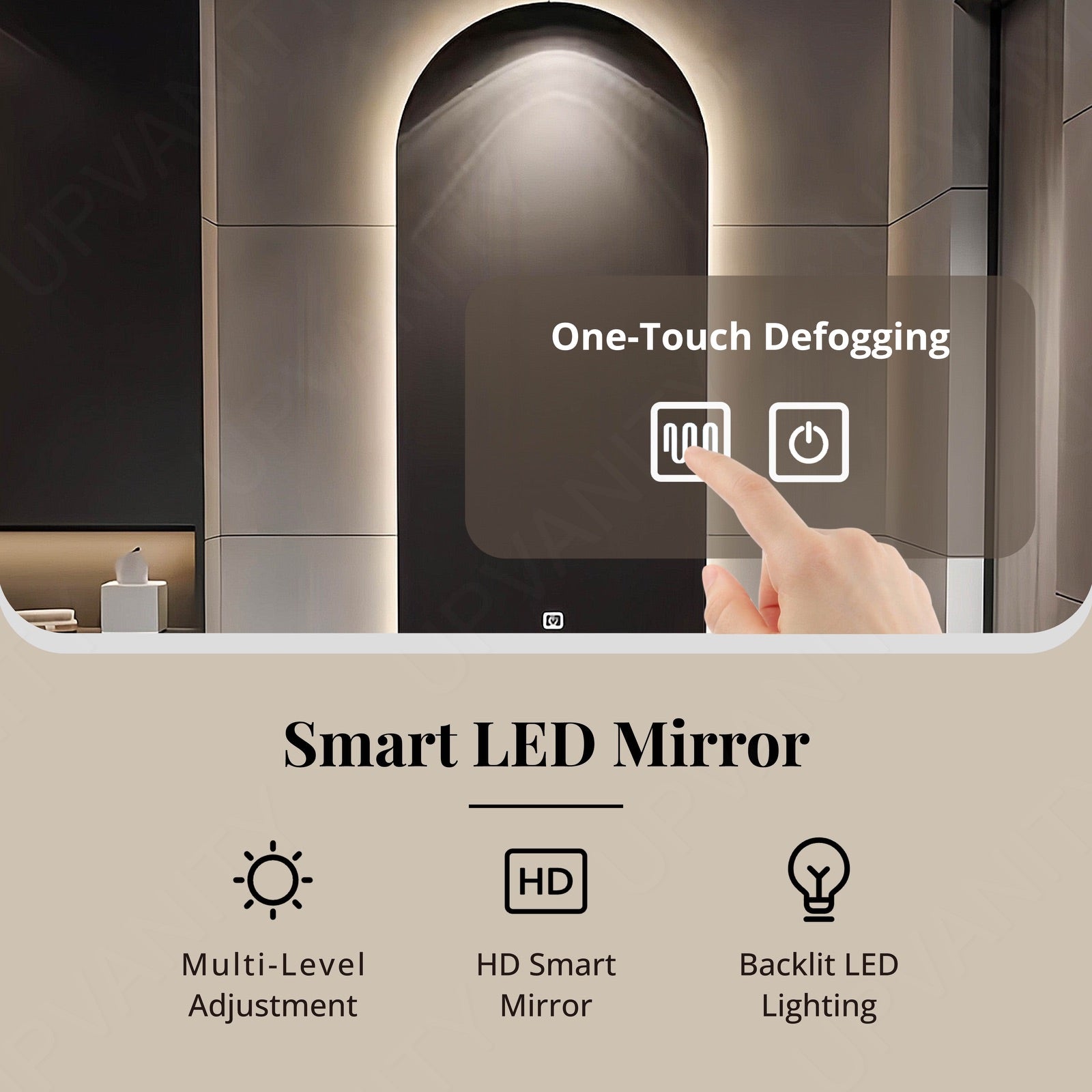 The oval-shaped HD float silver mirror features cutting-edge LED lighting and defogging technology. It offers perfect clarity and elegance, ensuring a seamless grooming experience.