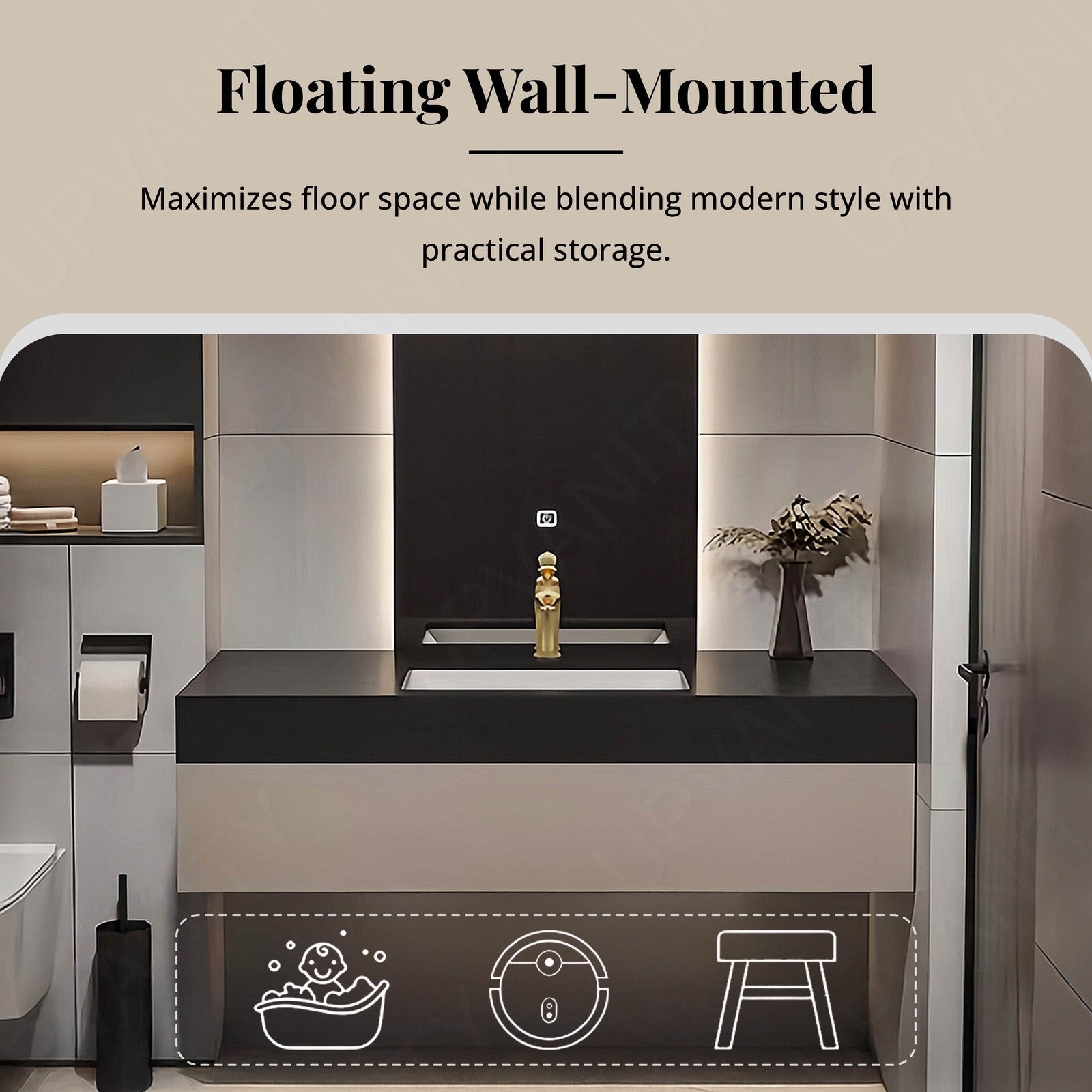 The wall-mounted floating design maximizes bathroom space while ensuring effortless cleaning. It creates a sleek, open look that enhances the overall ambiance of your bathroom.