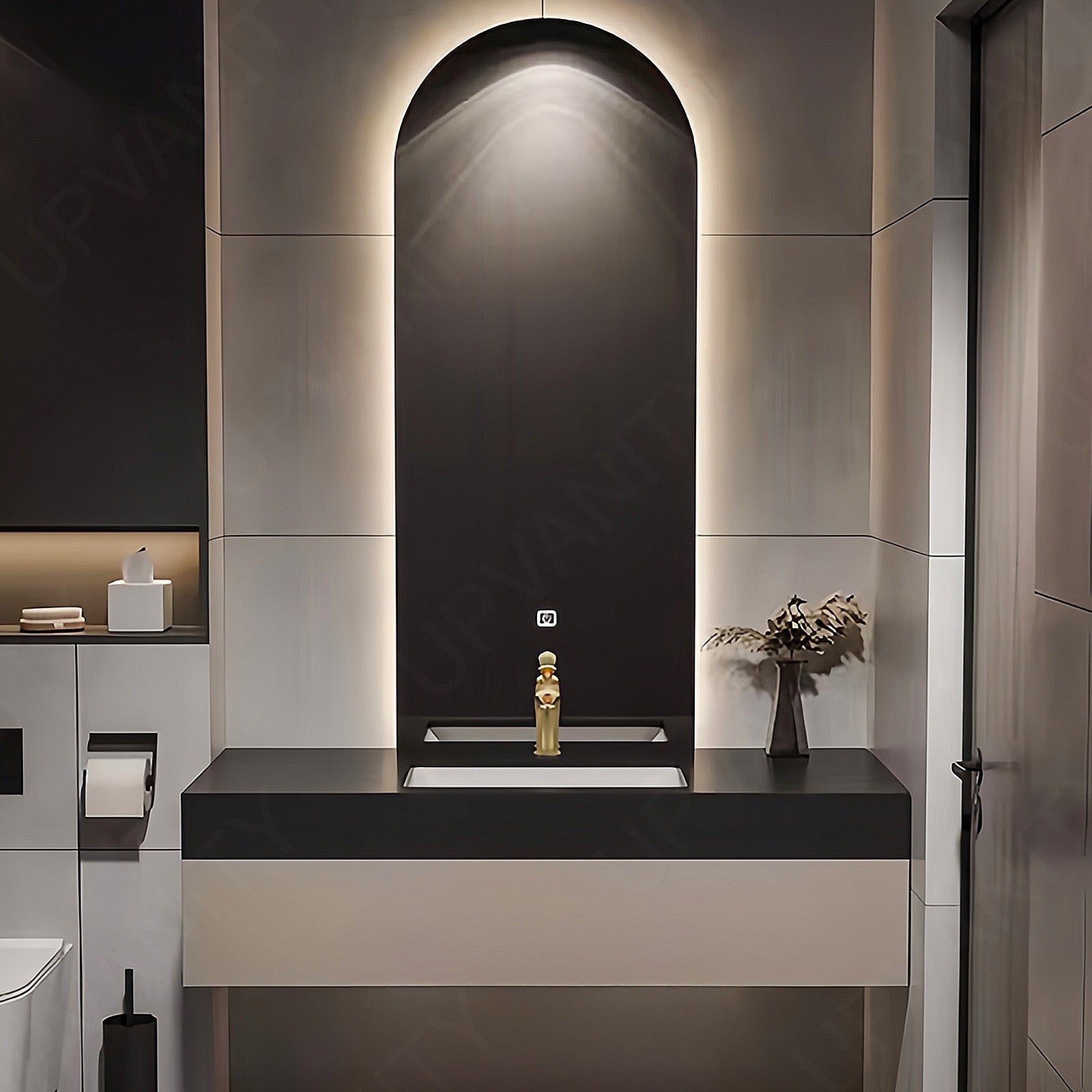 The striking split black top adds bold contrast to the beige finish, creating a captivating design element that elevates your bathroom’s aesthetic appeal with a modern edge.