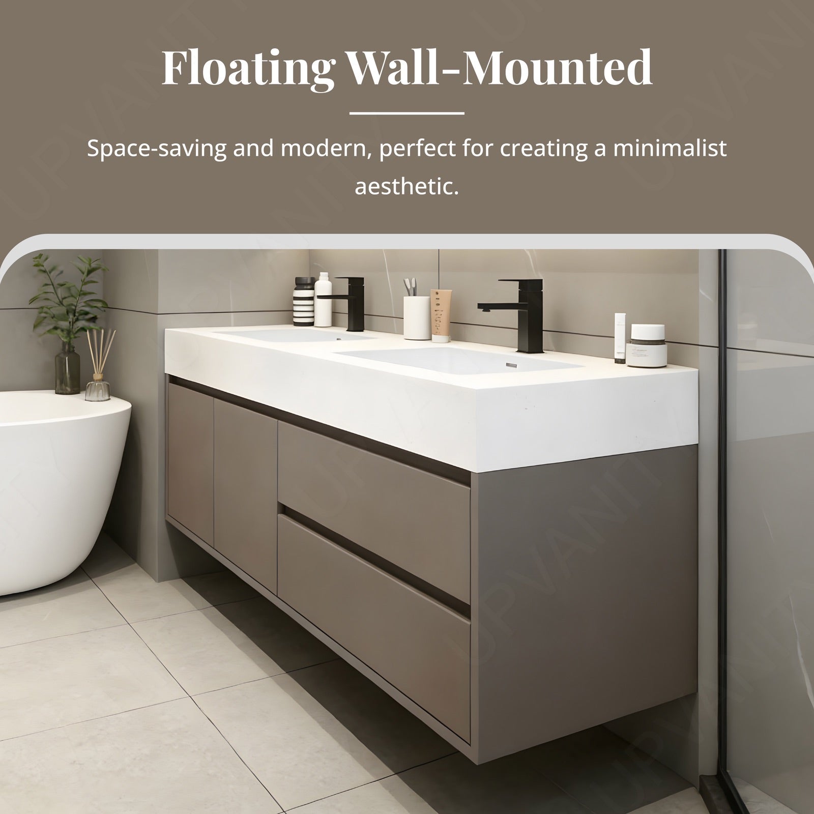 This floating vanity is ideal for maximizing bathroom space. It ensures a clean, uncluttered look, offering flexibility in installation and making it the perfect solution for small or large bathrooms.