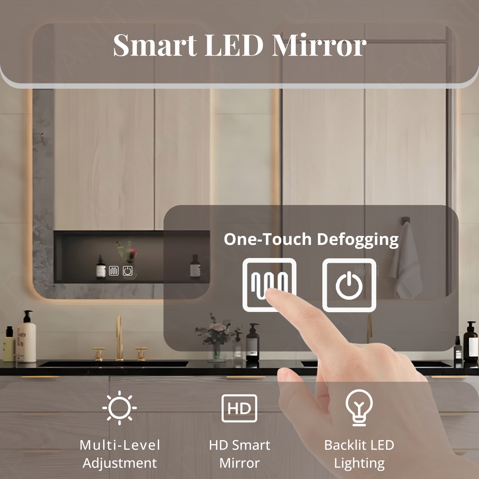 Equipped with dual smart LED mirrors, this vanity ensures optimal lighting and defogging technology for a seamless bathroom experience.