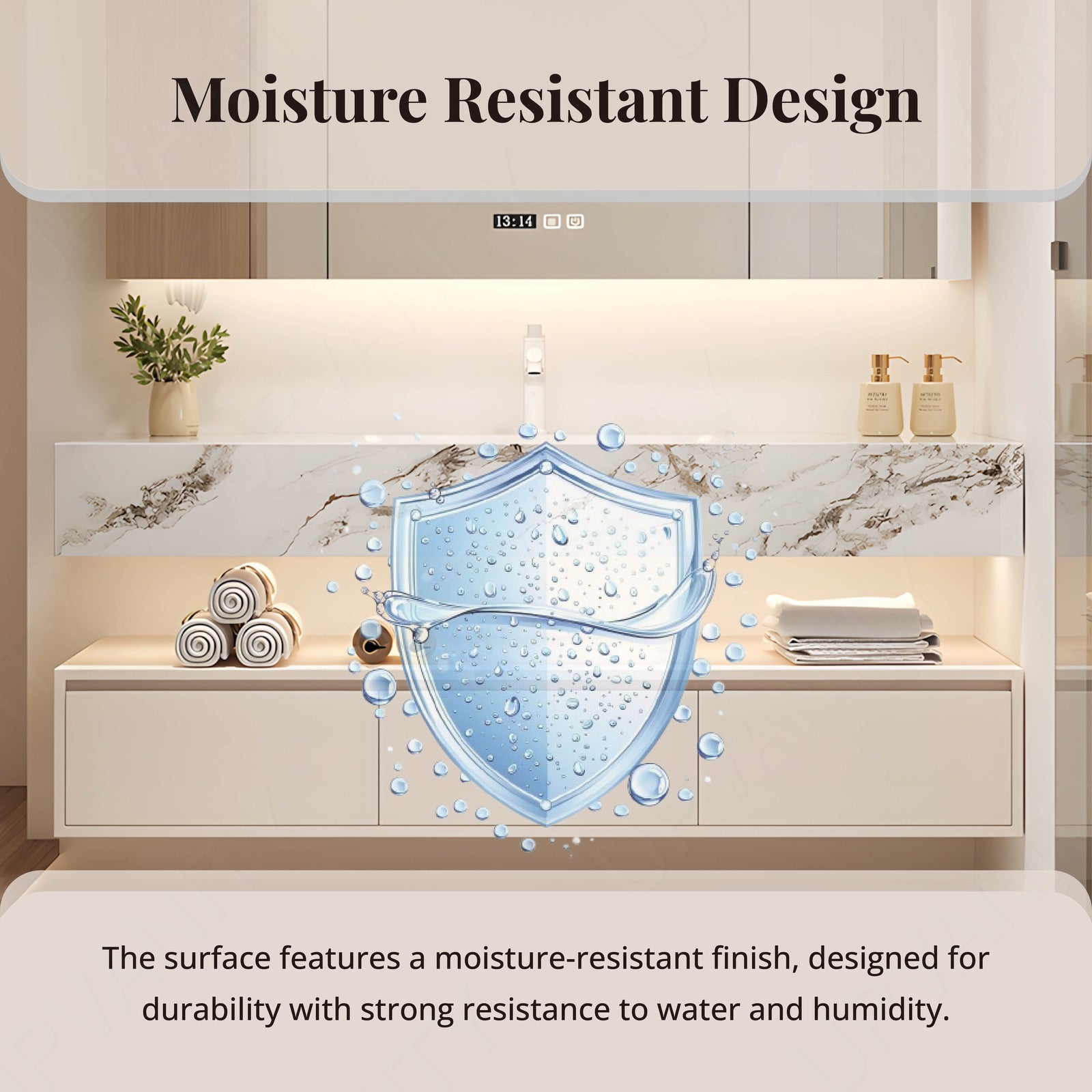 The rear cabinet offers additional storage space around the mirror, perfect for organizing toiletries and daily essentials, blending functionality with style.
