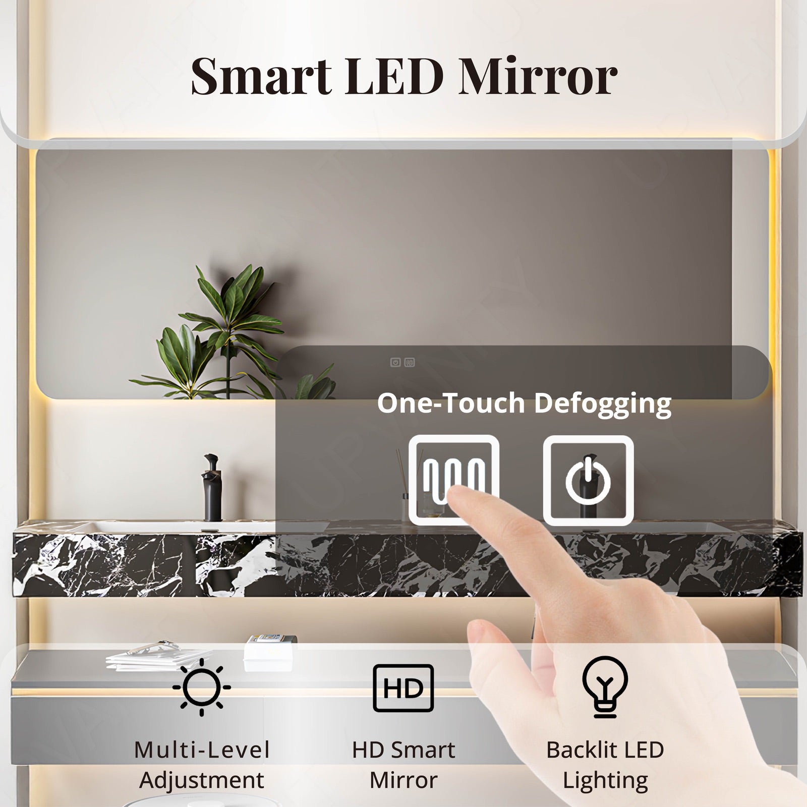 Featuring a smart LED mirror, this vanity offers bright, clear illumination and built-in defogging technology for a seamless grooming experience.