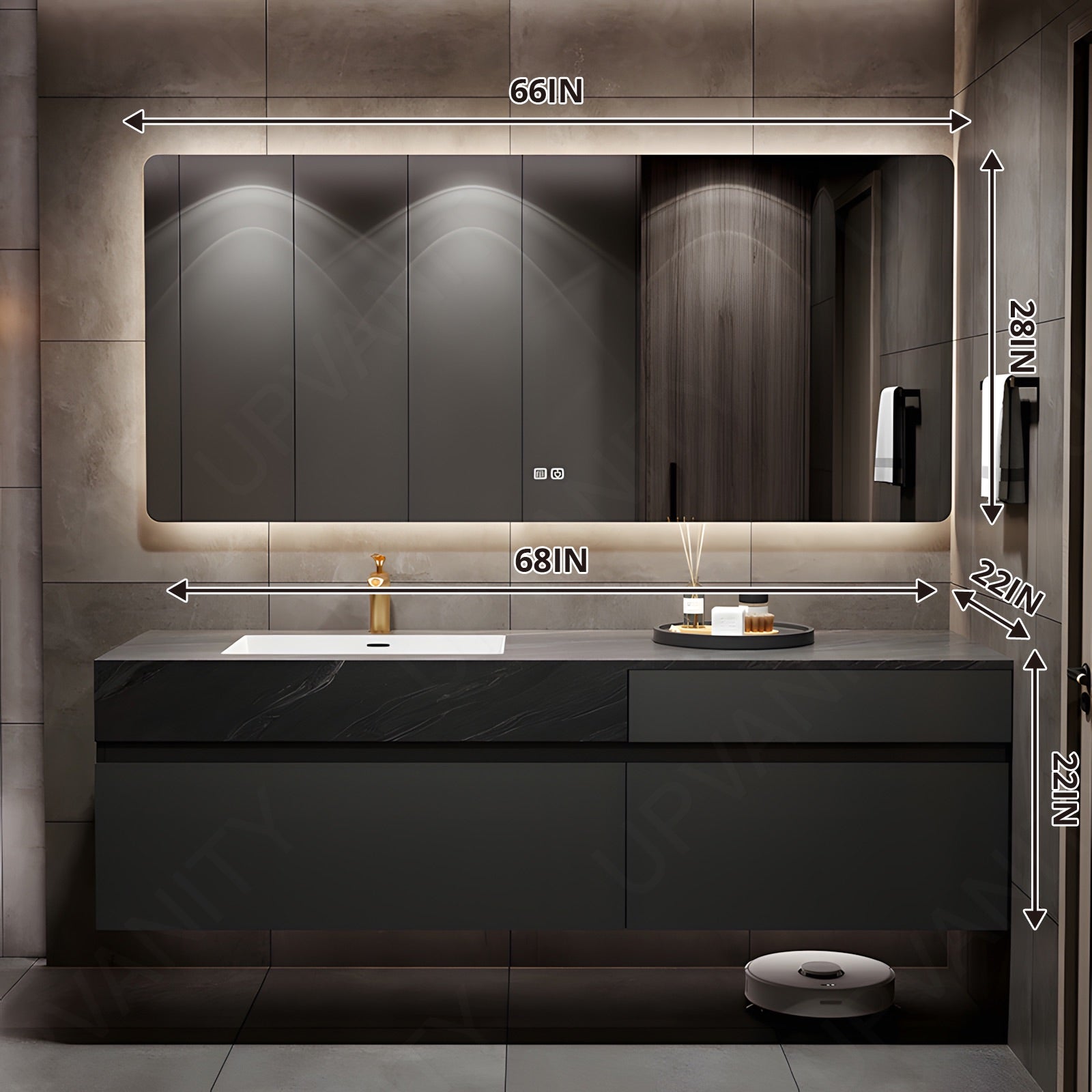 quipped with a smart LED mirror, this vanity enhances your bathroom experience with improved lighting, making daily routines more efficient and enjoyable.