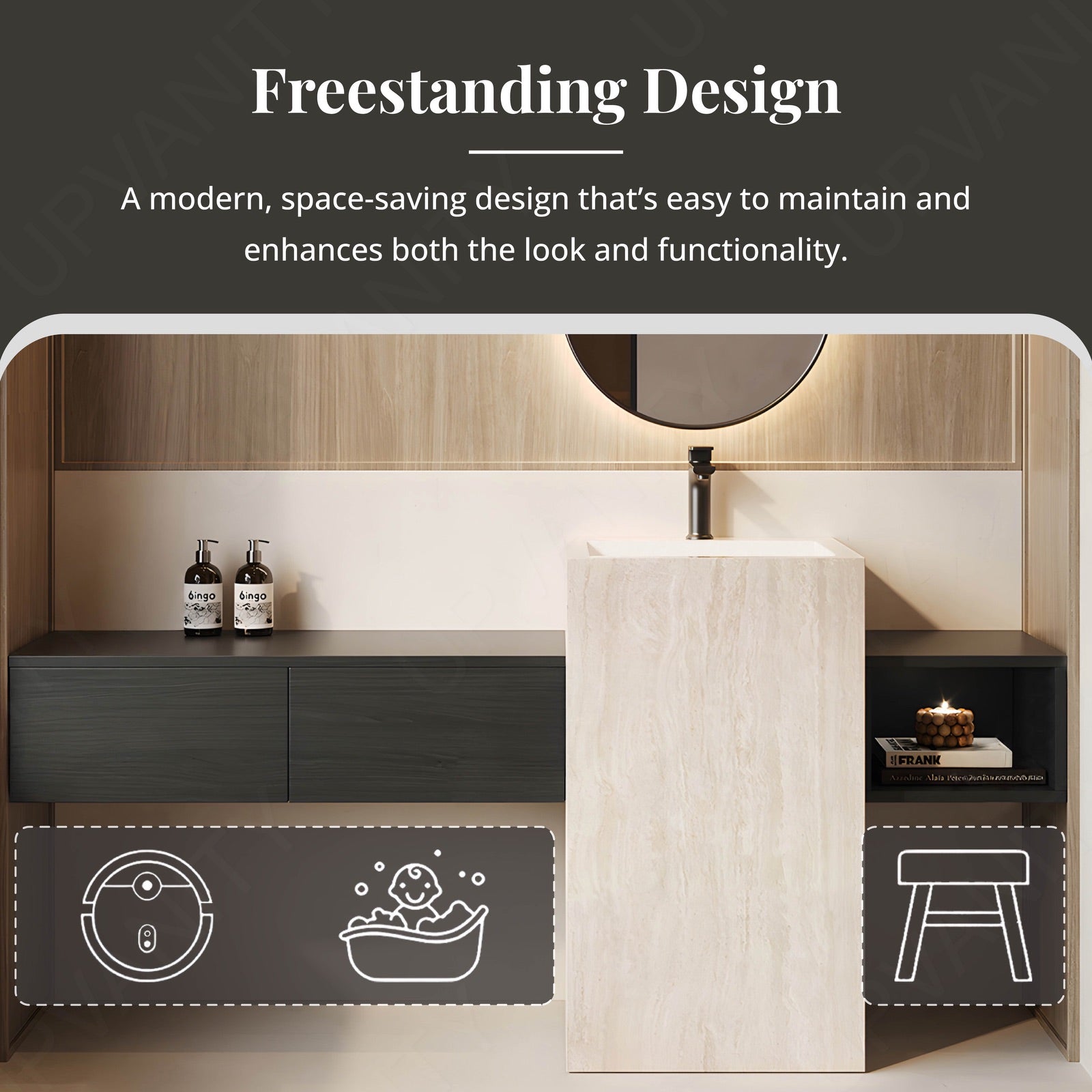 The single integrated sink brings seamless connection across the countertop. Its soft edges and smooth basin promote effortless cleaning while supporting everyday comfort and performance.