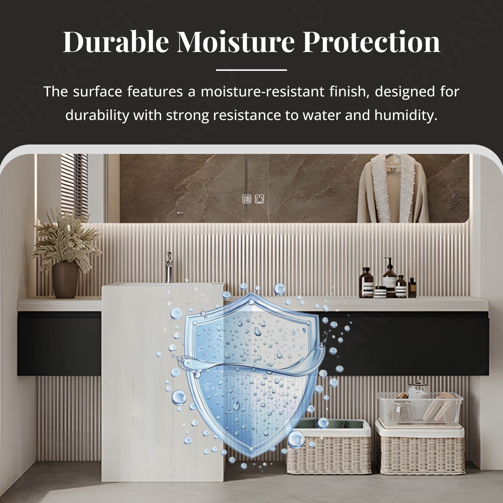 Illuminated by even LED lighting, the mirror offers true reflection and clear brightness. Built‑in defog function maintains visibility, turning daily tasks into a crisp, light‑balanced experience.