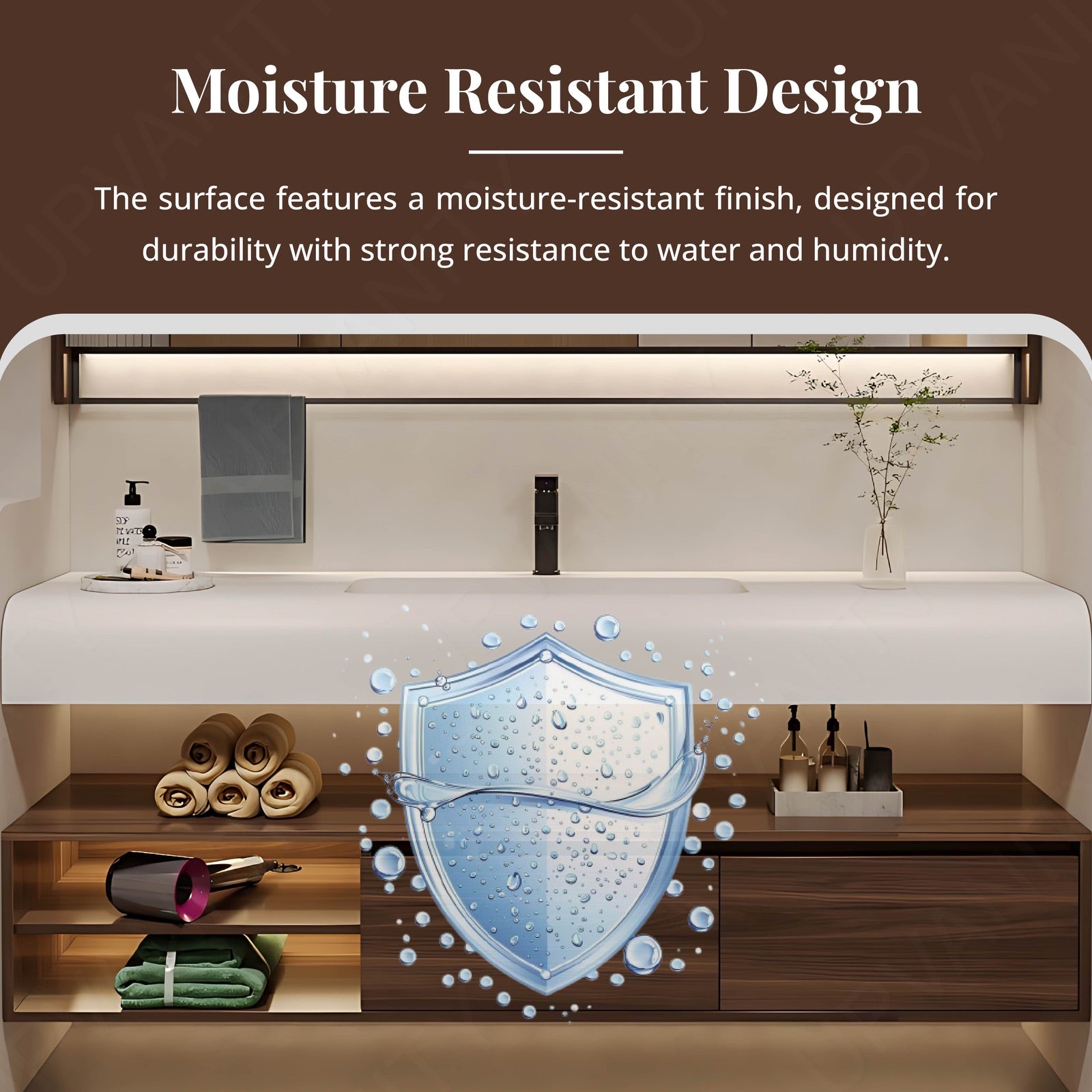 The vanity's rounded edges and high-quality materials ensure long-lasting durability and a refined finish, making it a stylish yet practical choice for your bathroom.