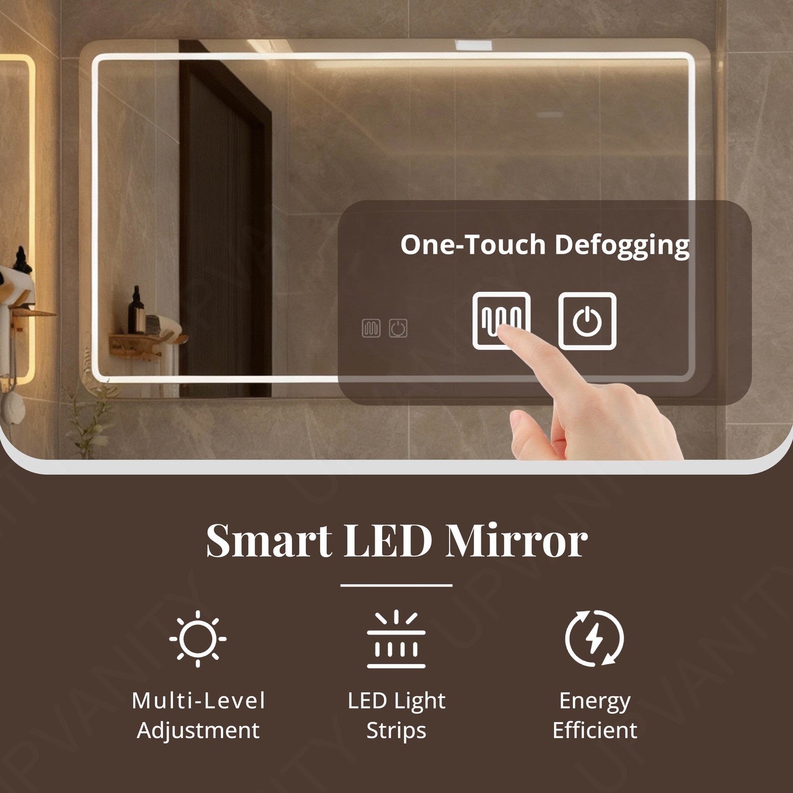 Soft built-in LEDs offer even, energy-efficient lighting that sharpens clarity for daily grooming. The mirror’s modern design transforms from task-ready precision to atmospheric nighttime glow effortlessly.