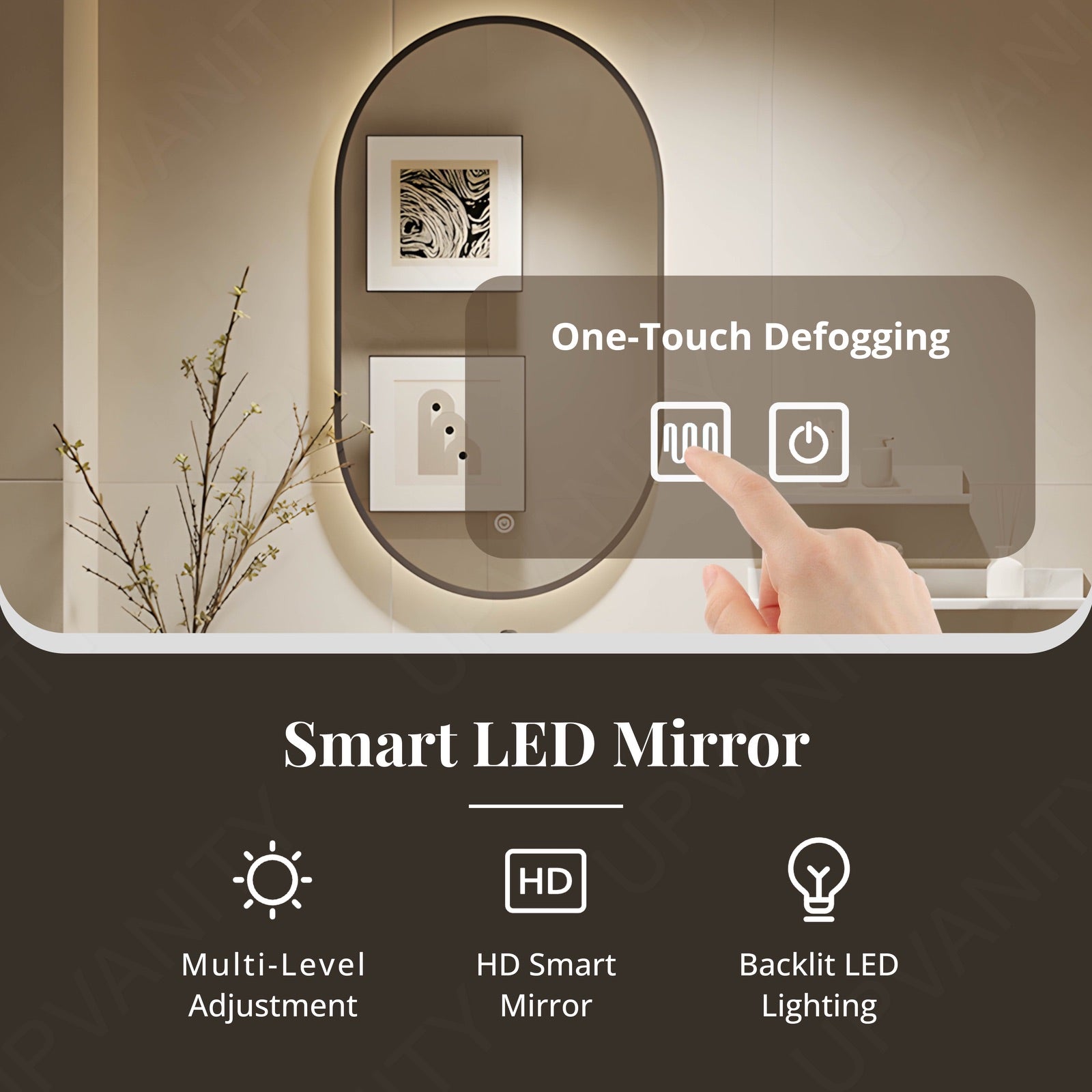 Oval Smart LED Mirror with Defog Lighting: