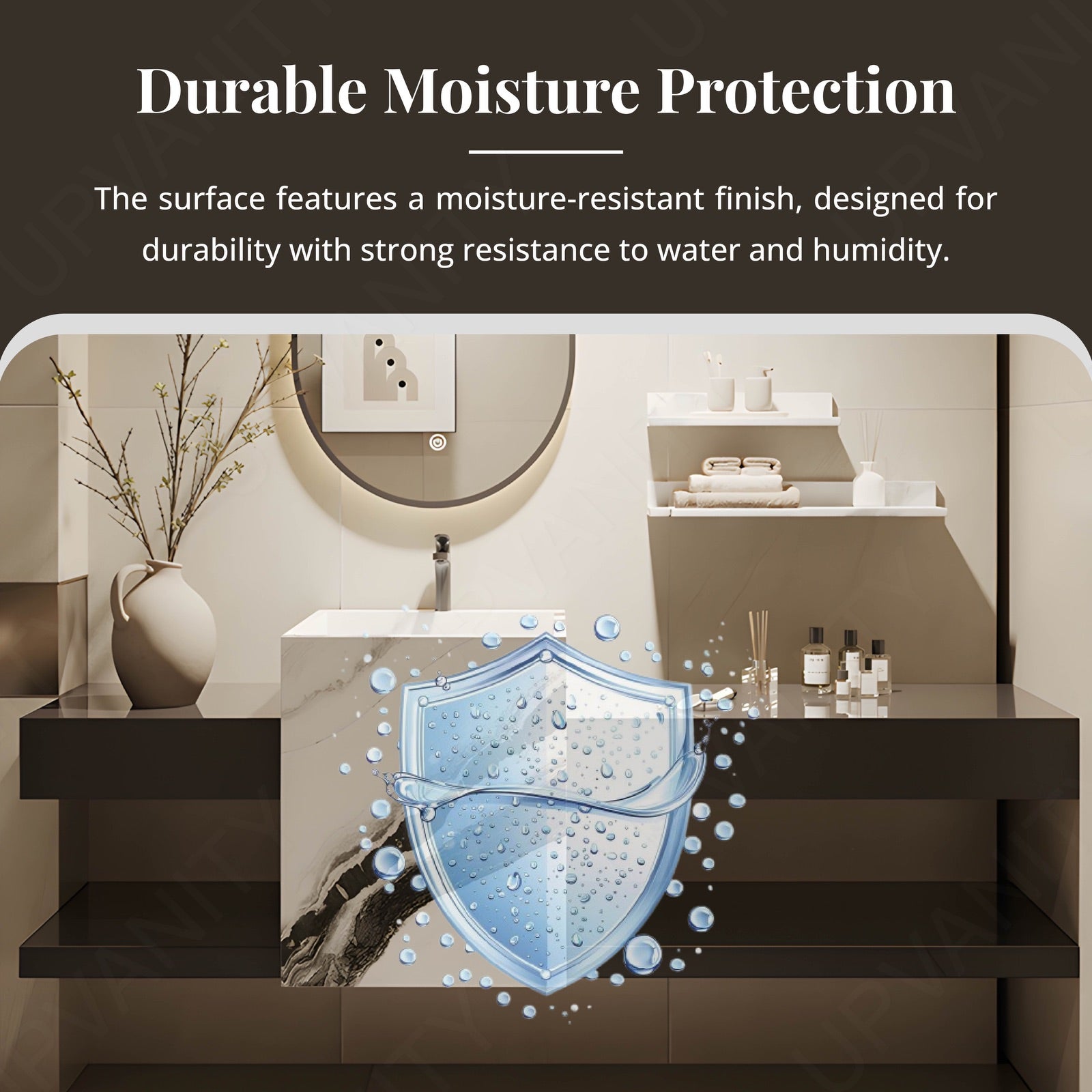 Built for wear resistance and lasting clarity, the countertop’s smooth polished surface brightens the vanity. It pairs durability with elegance for daily use and effortless maintenance.