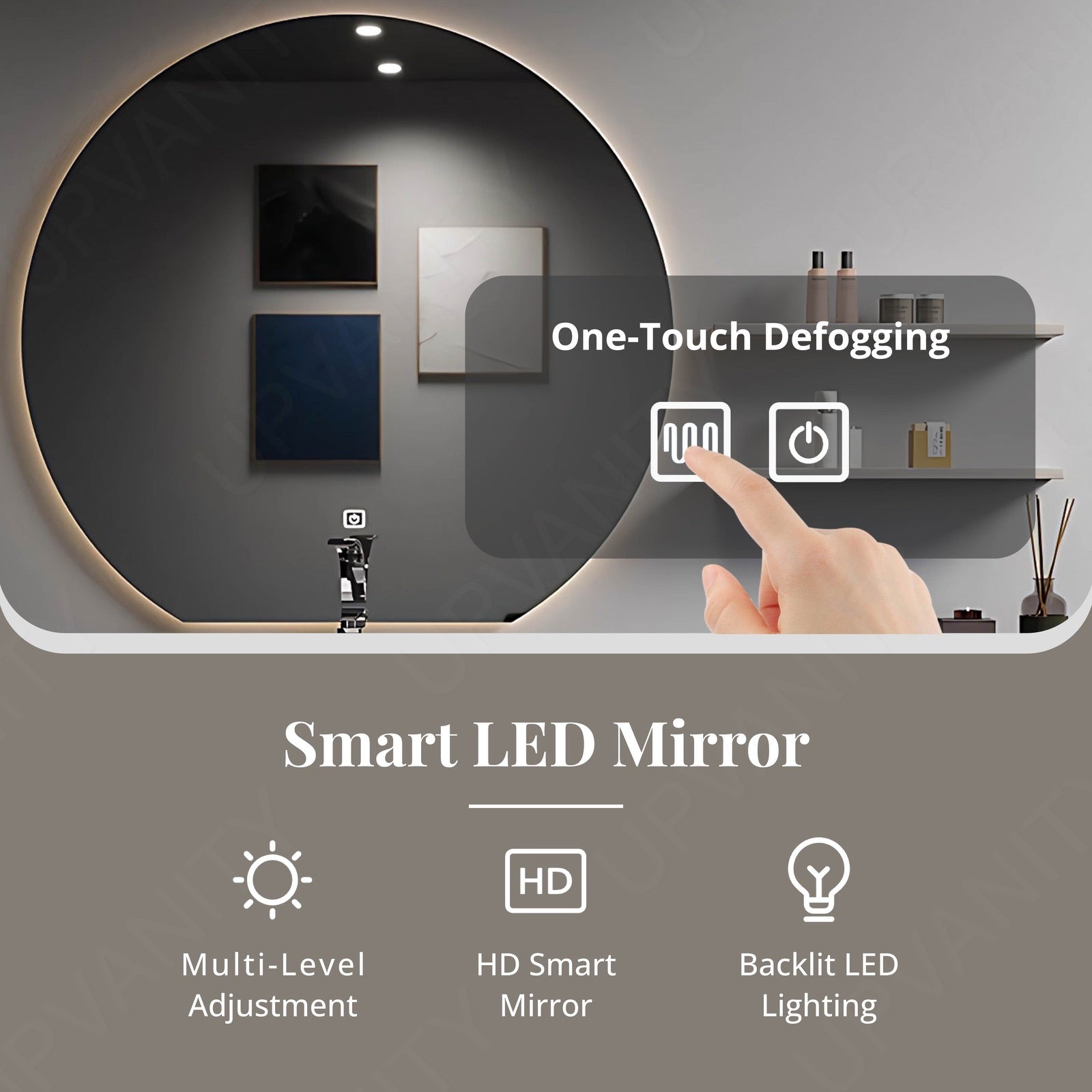 The round smart LED mirror offers optimal lighting for your daily routine, featuring defogging technology to ensure a clear reflection even in steamy conditions.