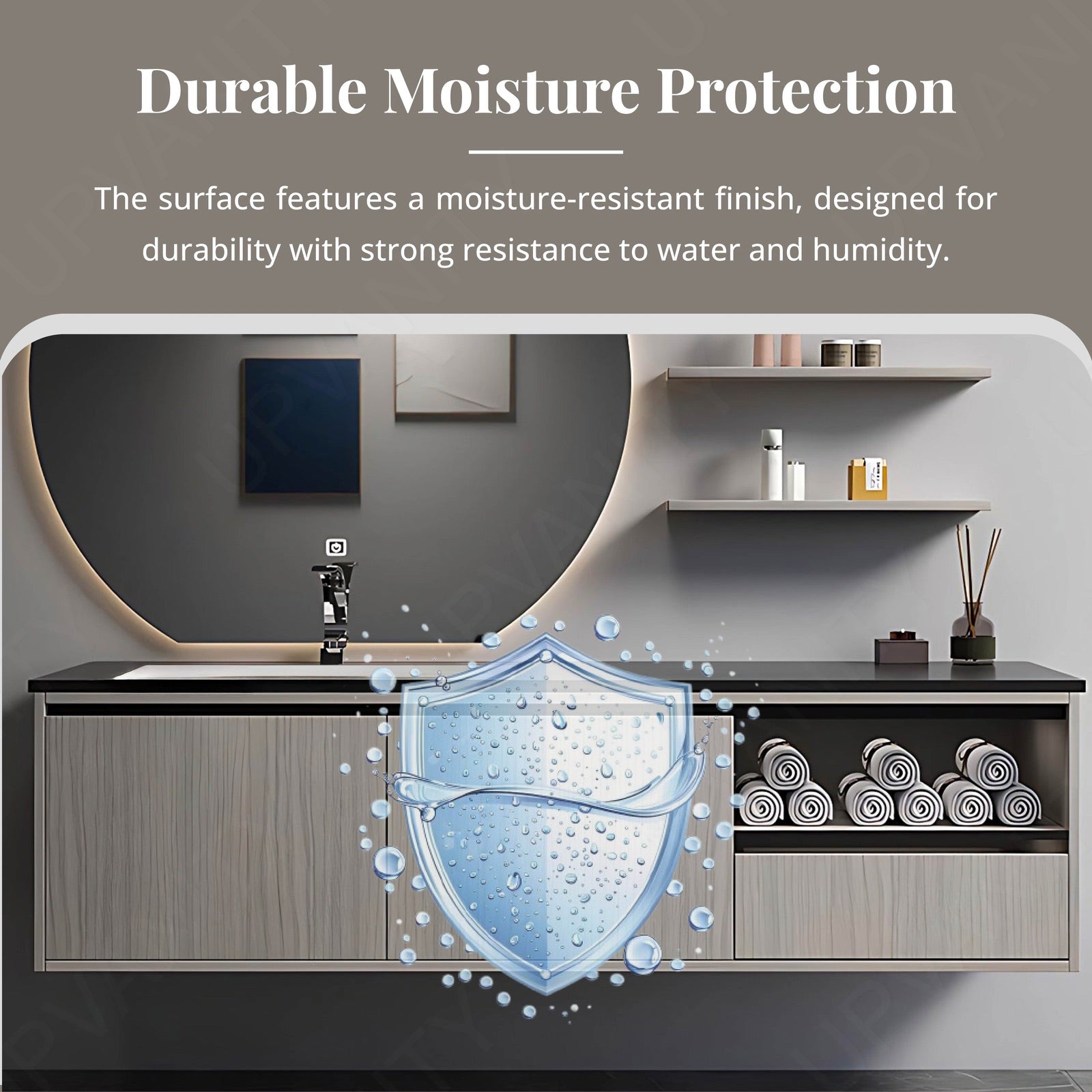 The modern gray finish of the vanity adds a contemporary touch to your bathroom, complementing various decor styles while providing a sleek, polished look.