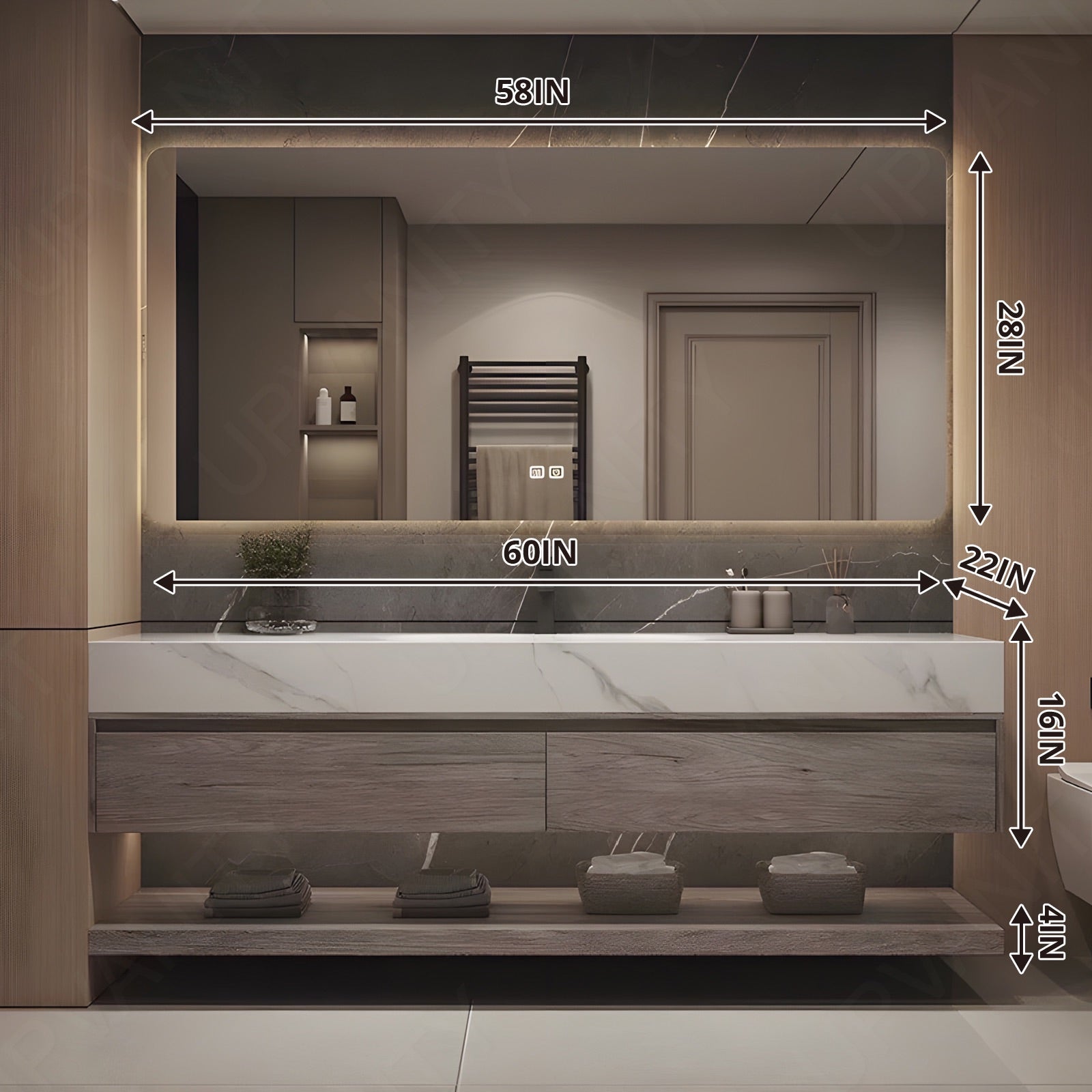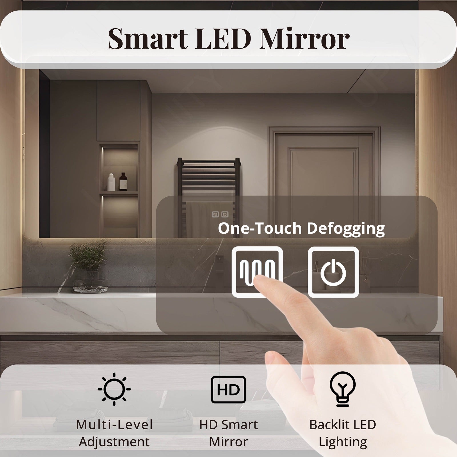 The smart LED mirror provides excellent lighting and defogging capabilities, enhancing visibility and convenience during your grooming routine.