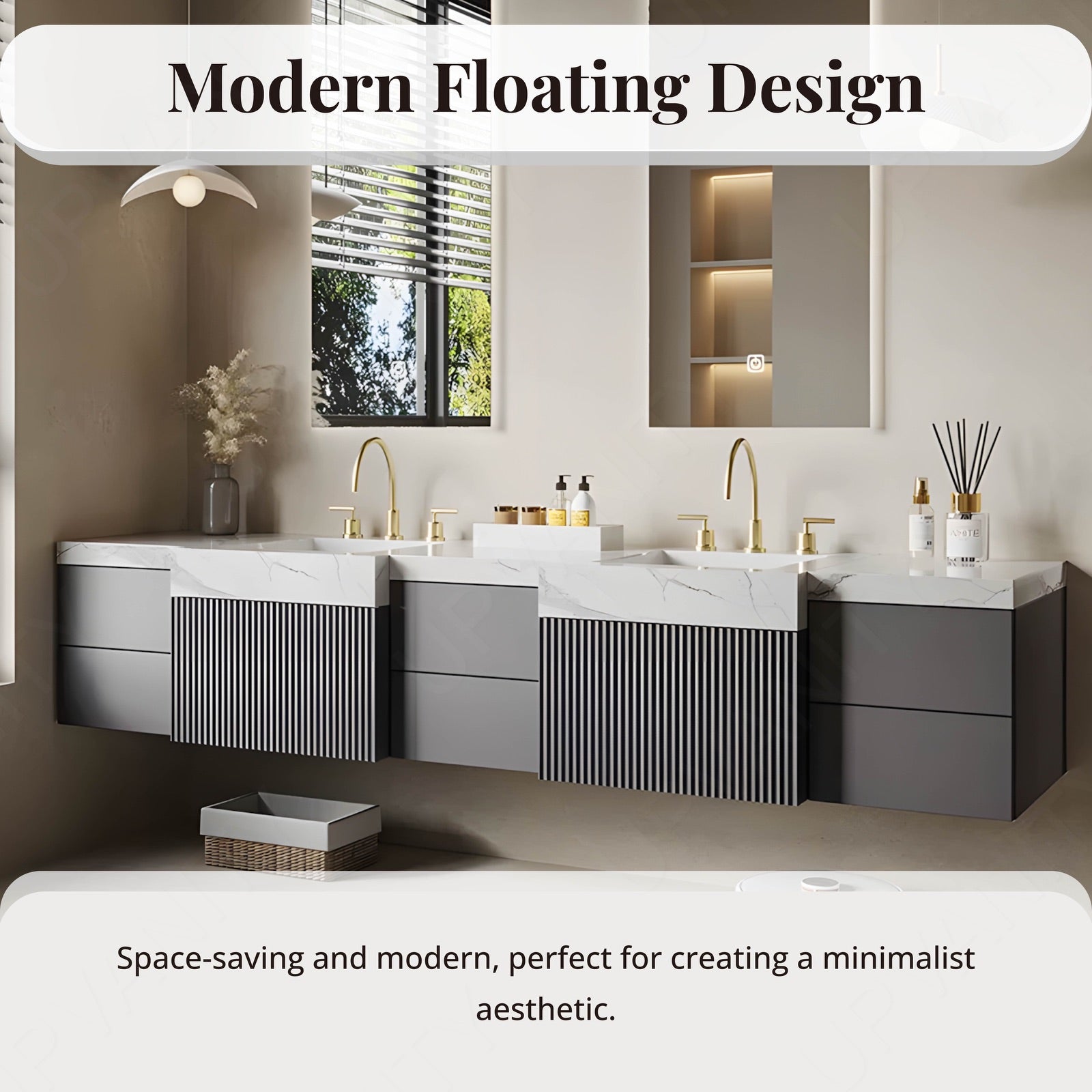 The floating design and versatile configuration options make installation straightforward, allowing you to quickly transform your bathroom with minimal effort.