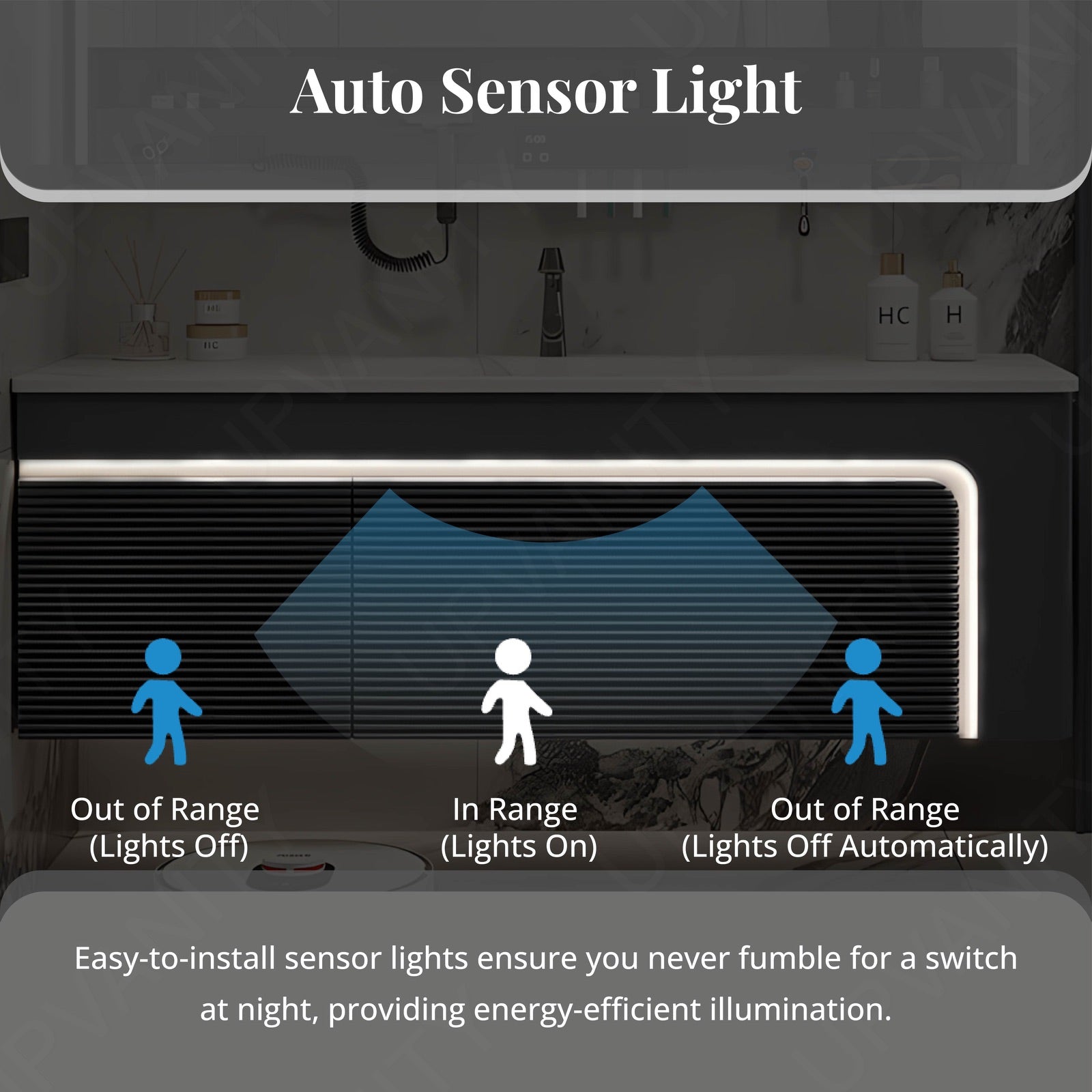 The automatic sensor light with motion-activated technology illuminates your bathroom effortlessly, providing convenience and peace of mind during late-night visits.