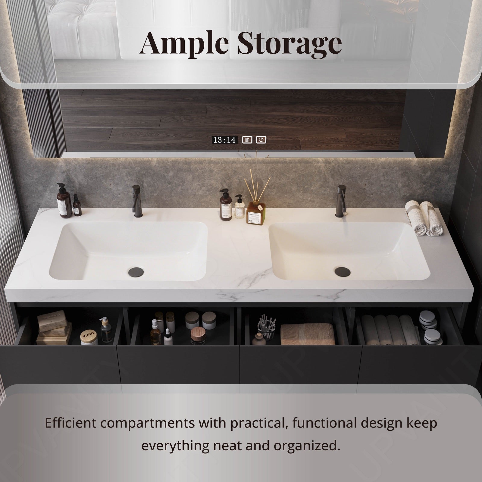 Ideal for shared spaces, the double sink configuration ensures efficiency and ease during busy morning routines, catering to the needs of multiple users.
