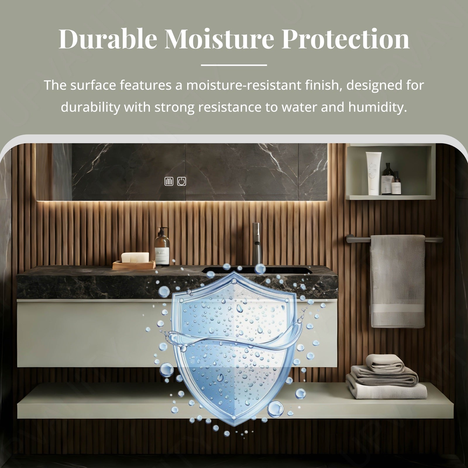Positioned alongside the mirror for quick access, this hidden compartment keeps toiletries organized without cluttering the countertop.