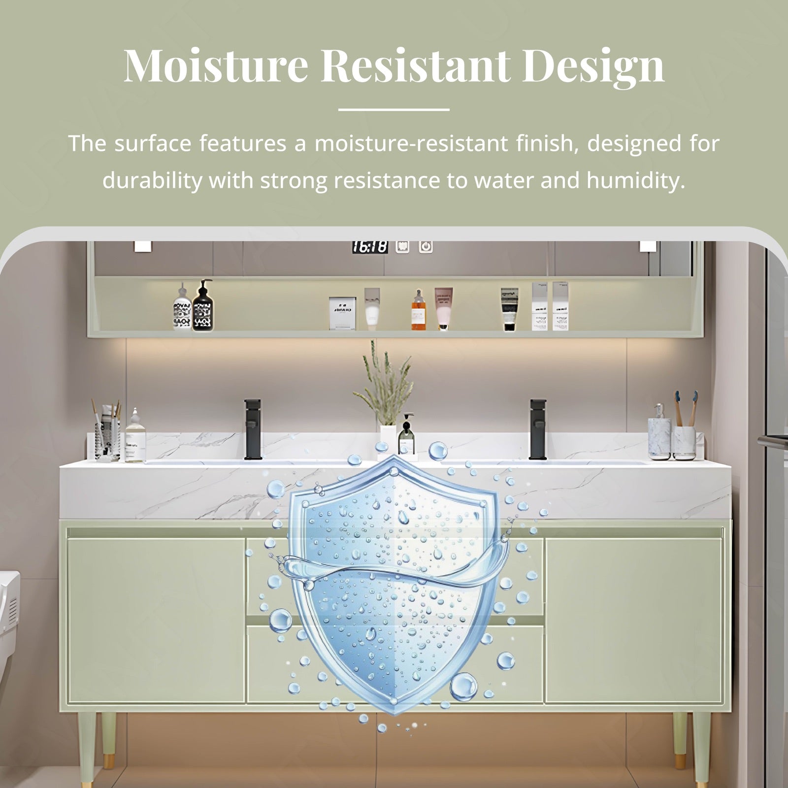 The rear cabinet offers ample storage space for organizing toiletries and daily essentials, keeping your bathroom tidy and clutter-free.