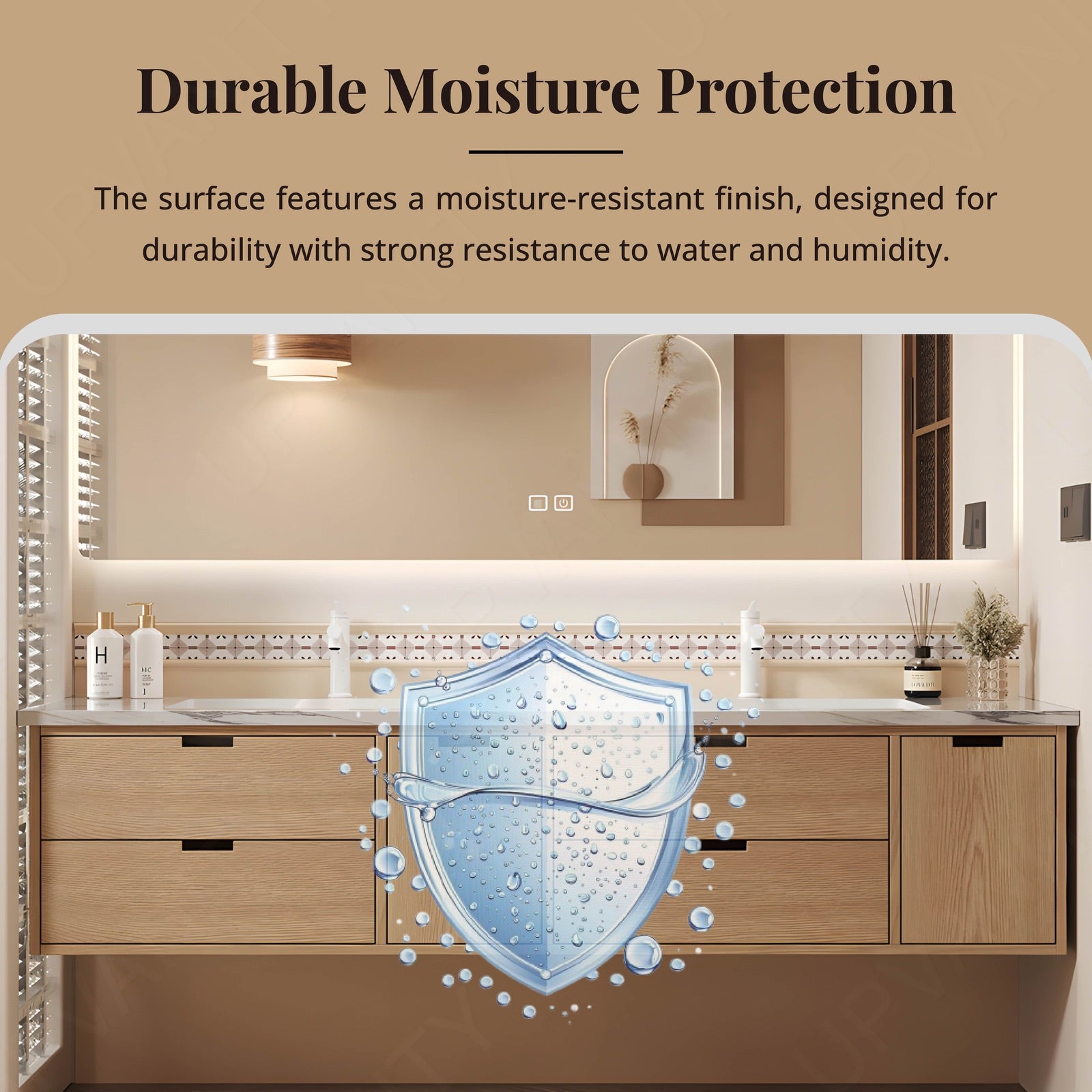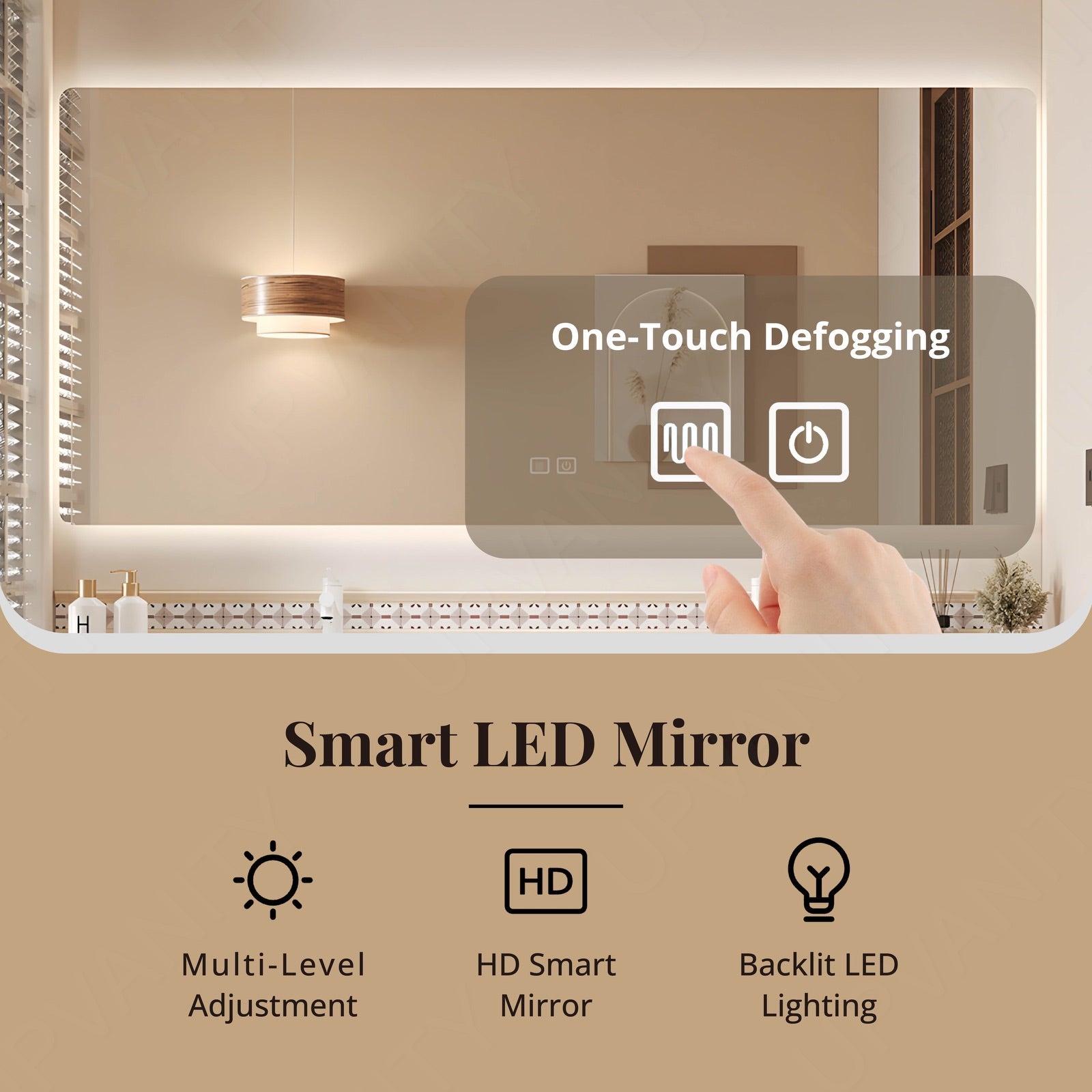The smart LED mirror features advanced defogging technology and optimal lighting, enhancing visibility and convenience during your daily routine.