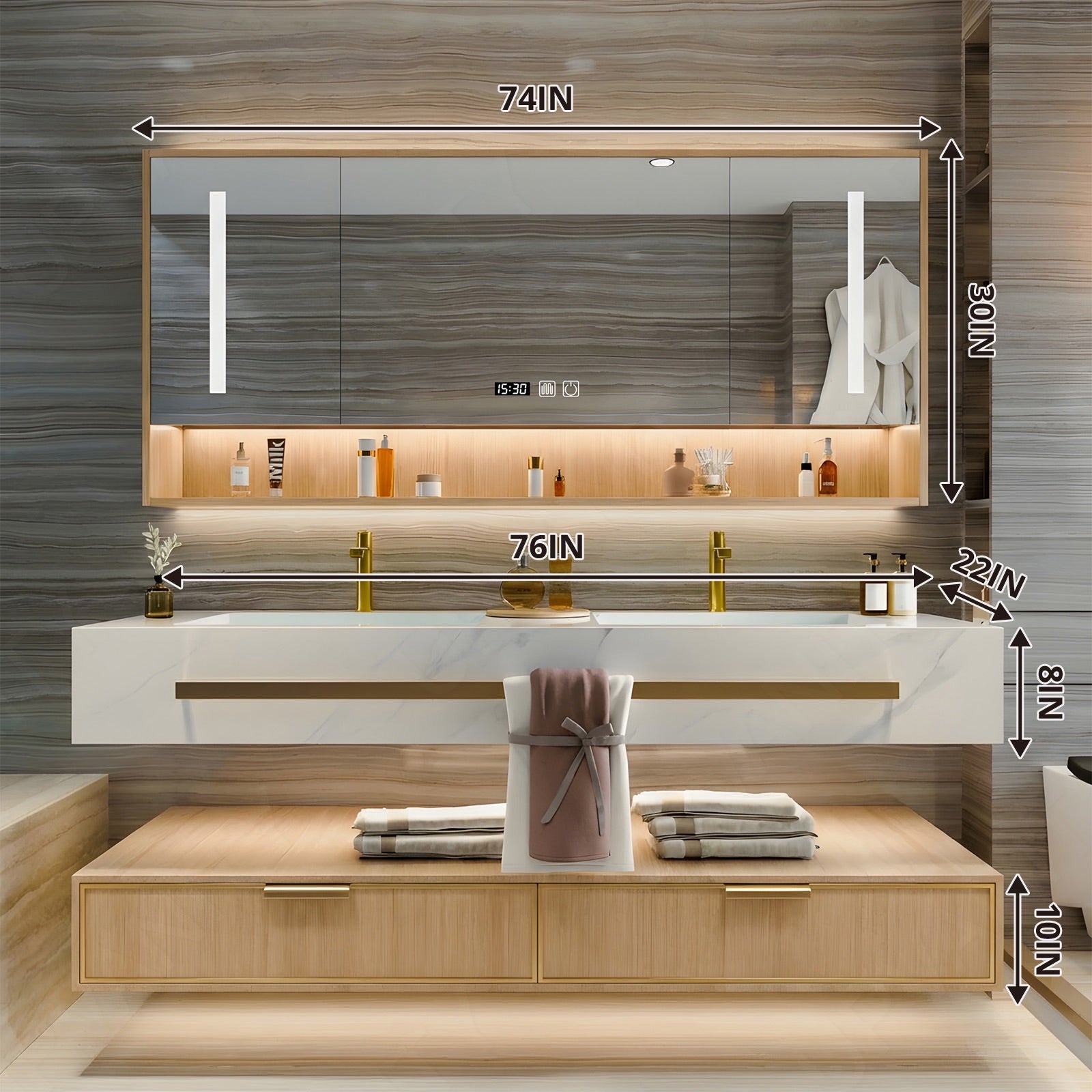 While our vanities are designed for easy installation, we recommend professional installation to ensure a perfect fit and finish. This is particularly advisable for more complex setups or custom orders, given the integration of smart mirrors and advanced features.