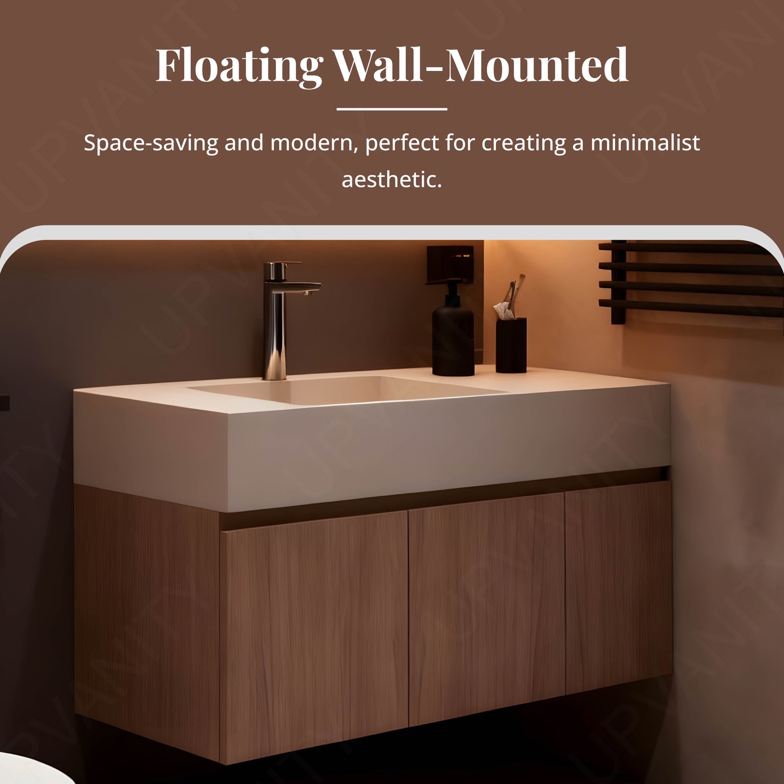 Wall-mounted construction lifts the vanity off the floor, creating visual openness while making it easy to maintain spotless flooring below the unit.