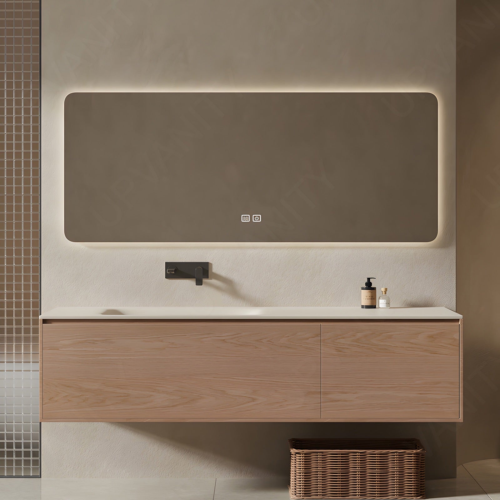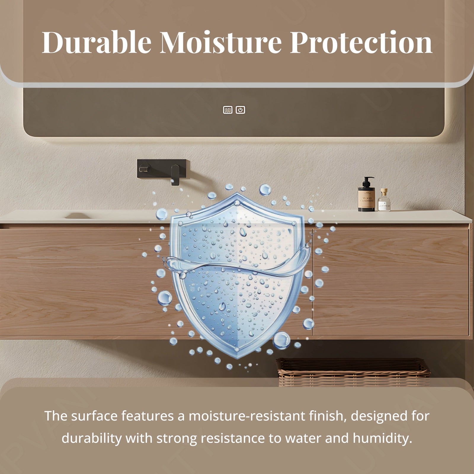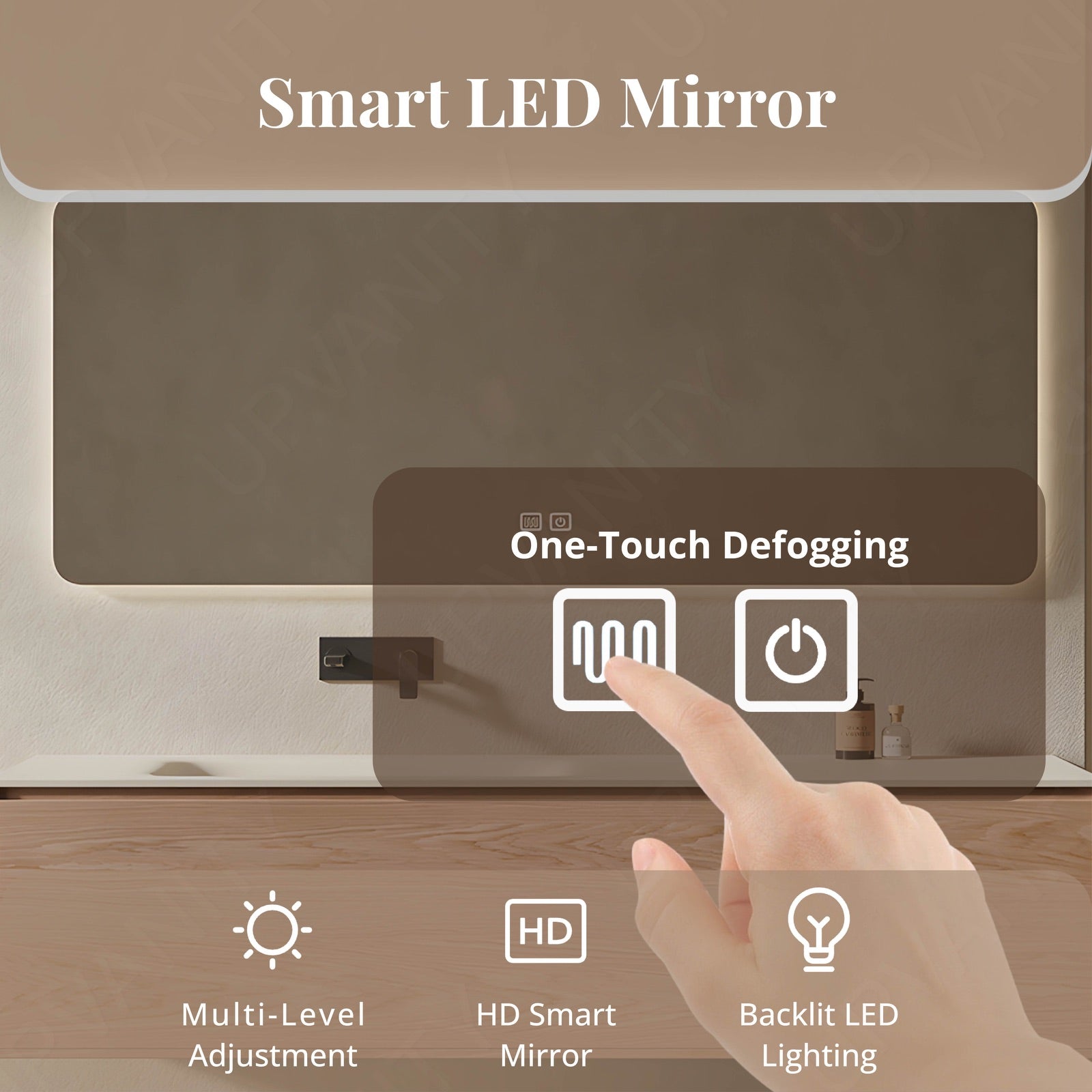 Equipped with a smart LED mirror, this vanity ensures optimal lighting and visibility, enhancing your grooming routine with its defogging technology.