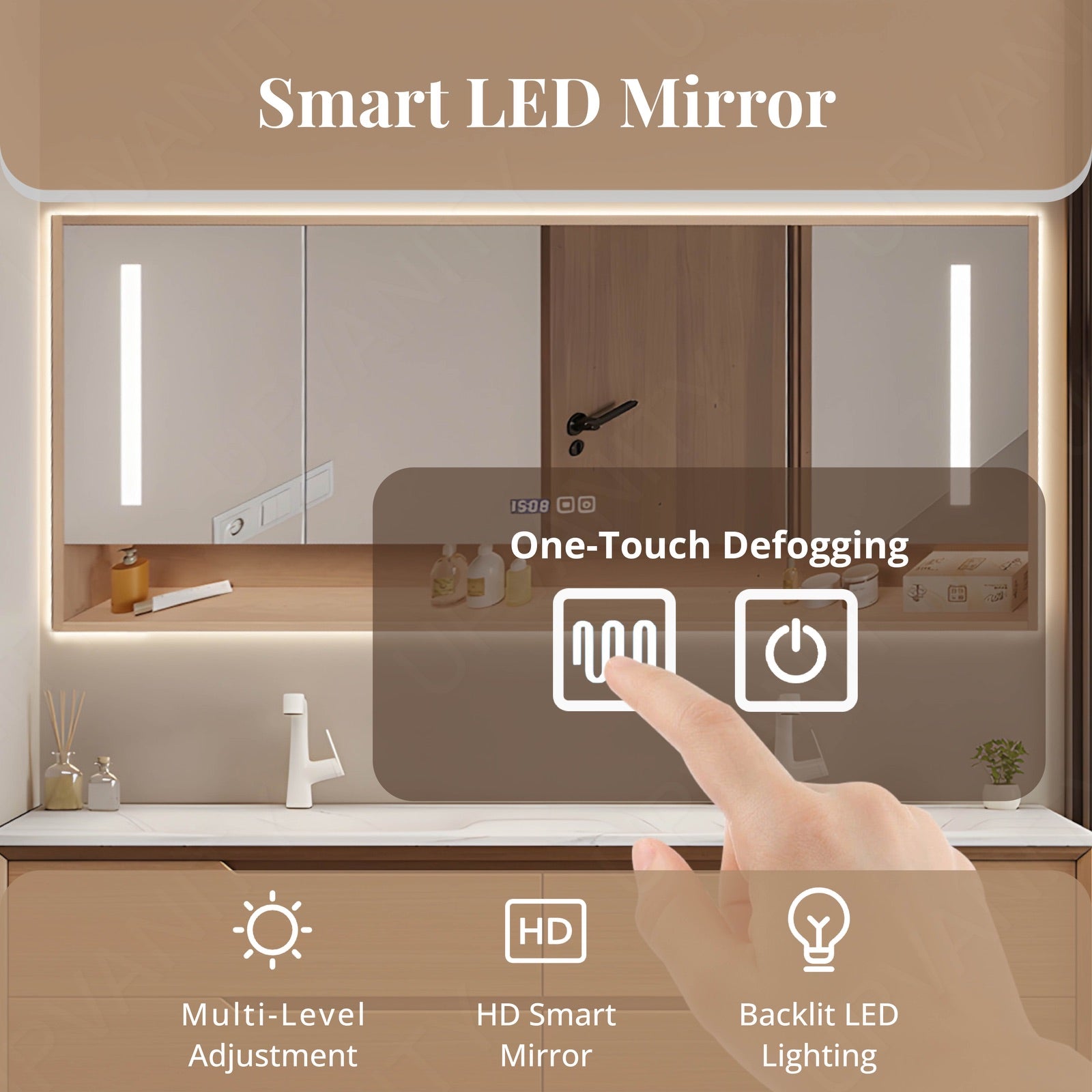 High-definition float silver mirror delivers adjustable, balanced lighting for grooming, with built-in defog technology to maintain visibility after showers.