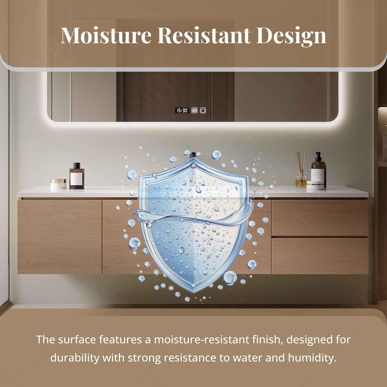 The smart LED mirror offers excellent lighting for your daily routine and features defogging technology for a clear reflection.