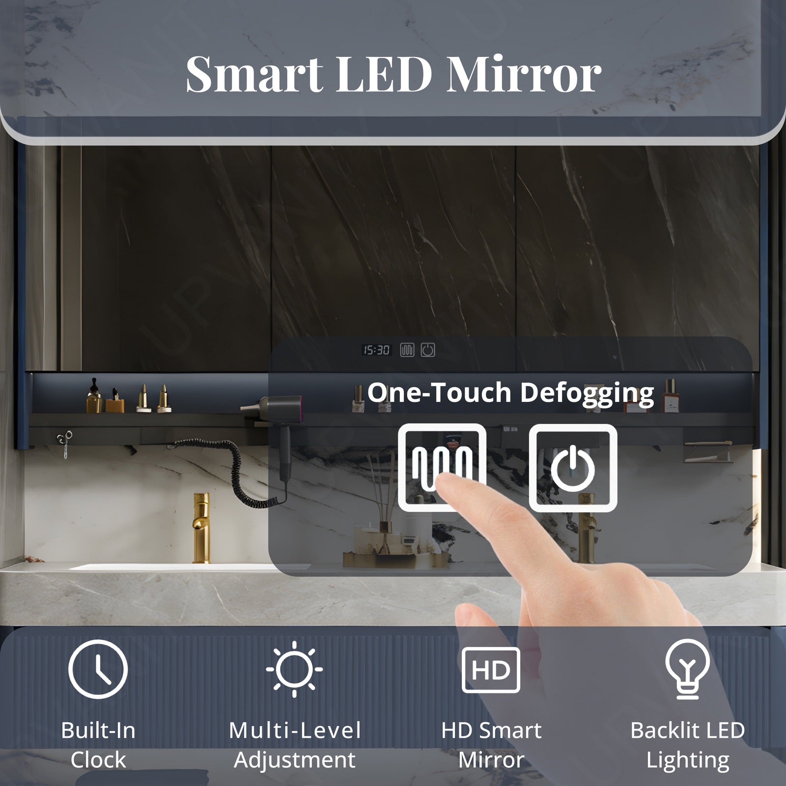 A rear cabinet behind the smart mirror offers extra compartments for toiletries and everyday items. Its hidden design ensures your bathroom stays clutter-free and stylish.