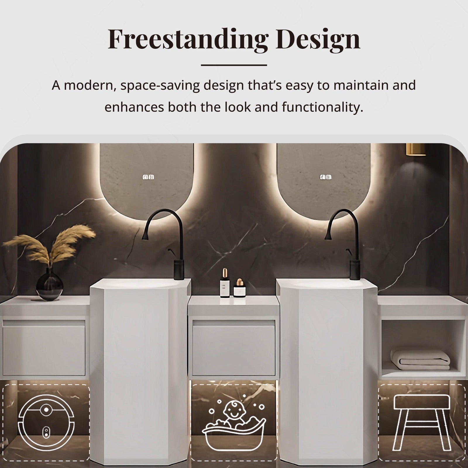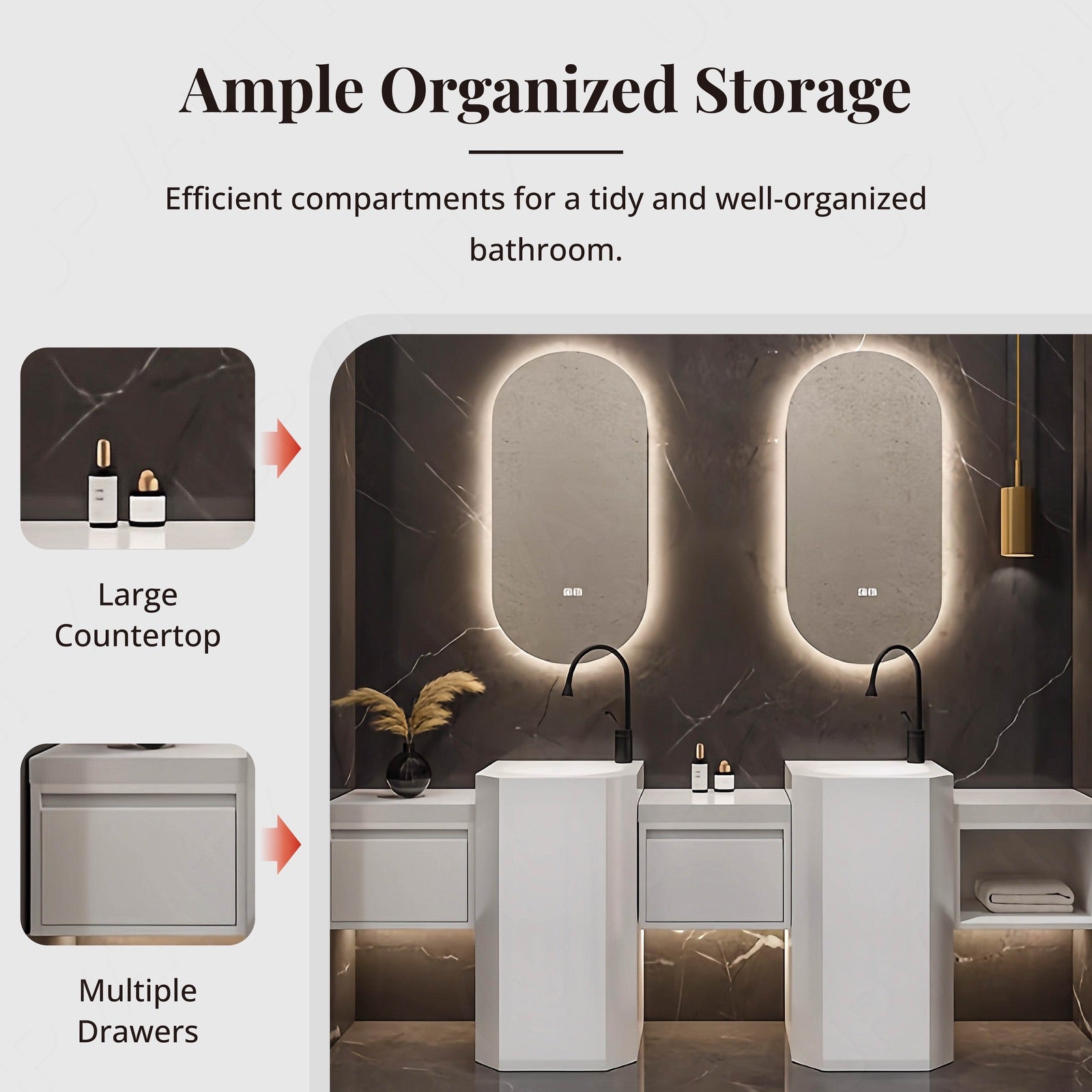 Innovative two-way expansion panels and open shelves offer ample storage, keeping your bathroom essentials organized and easily accessible.