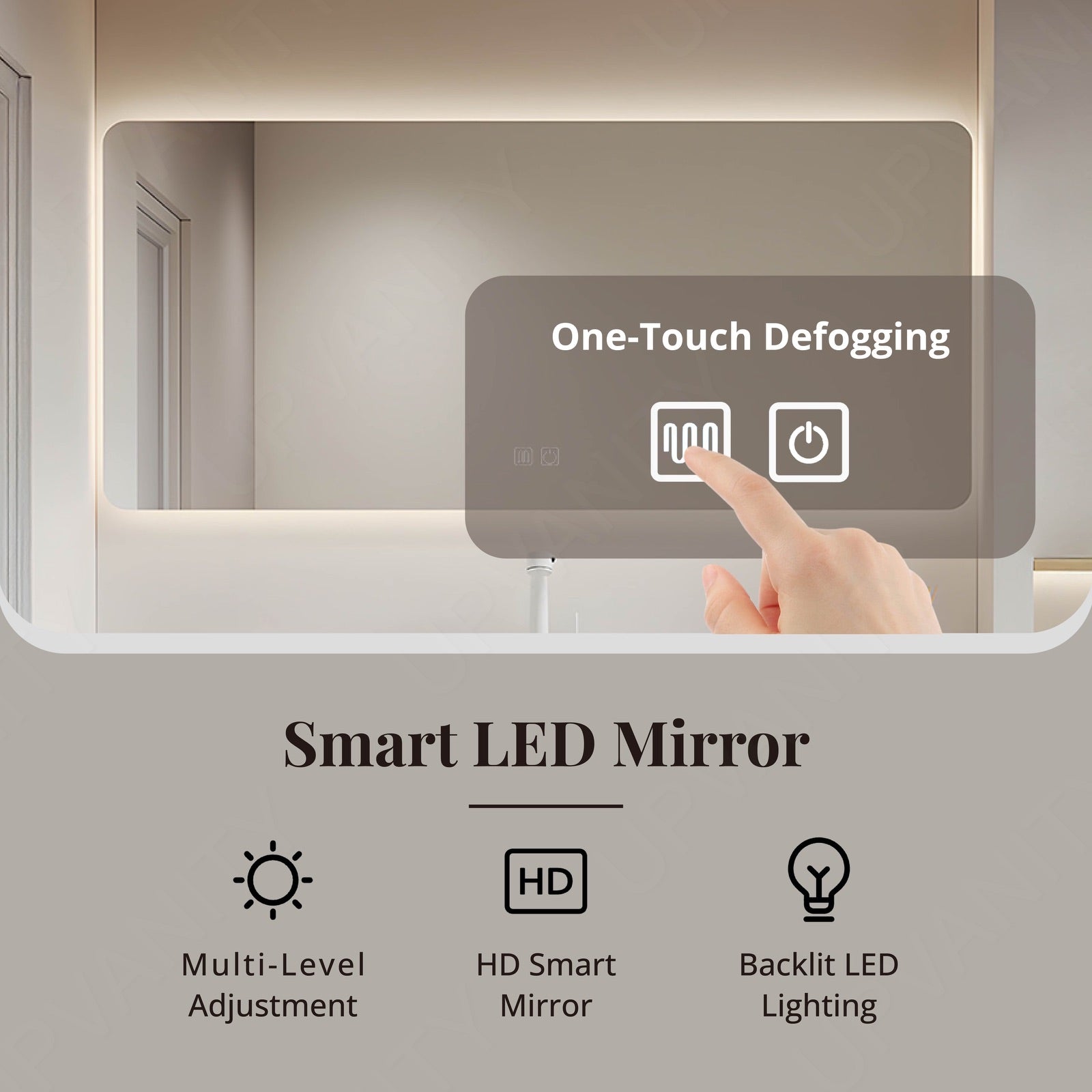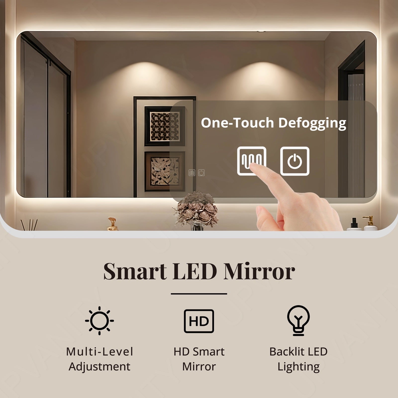 The advanced smart mirror delivers crisp lighting for grooming tasks, with defog capabilities ensuring a clear reflection even after steamy showers.